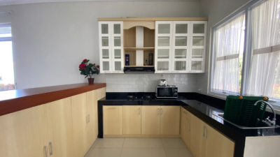 Salah satu keunggulan Villa Trisan 1 adalah dapur lengkap dengan peralatan masak, makan, dan minum. Anda bisa memasak sendiri bersama keluarga atau menyajikan hidangan favorit untuk dinikmati bersama di ruang makan atau ruang keluarga yang lega dan nyaman. Tersedia juga TV, karaoke, dan WiFi, cocok untuk hiburan saat bersantai.